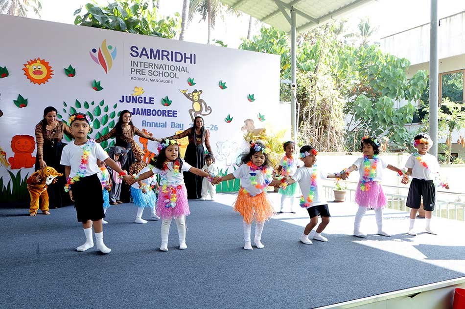 Our Annual Day 2025–26, themed “Jungle Jamboree,” was a spectacular and resounding success. The campus was transformed into a vibrant wild wonder, setting the stage for our talented young stars to shine. The children captivated the audience with energetic dance performances and heartwarming singing that filled the air with joy. Our confident speakers delivered impressive speeches, while the young actors brought jungle stories to life through creative drama. Each performance highlighted the incredible growth, dedication, and various talents of our students. It was a proud moment for parents and teachers alike to witness such a grand display of confidence. This celebration truly reflected the spirit of Samridhi International and our commitment to holistic learning. We extend our heartfelt gratitude to everyone who made this “Jungle Jamboree” an unforgettable event.