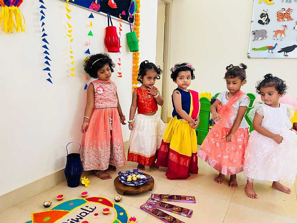 We celebrated diwali at school with joy. The children came dressed in colourful traditional clothes.